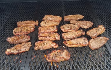 When it comes to having your event professionally catered, come to Gridirne! We have perfected the art of barbecue. All of our meats are pit roasted right over the coals for maximum flavor. They're grilled, roasted and smoked to perfection. We arrive with the cookers smoking and smelling good. The aroma of the meat permeates the air, adding to the atmosphere of the event. Once the meats are done, we hard carve and serve them up hot and fresh for your ultimate enjoyment!